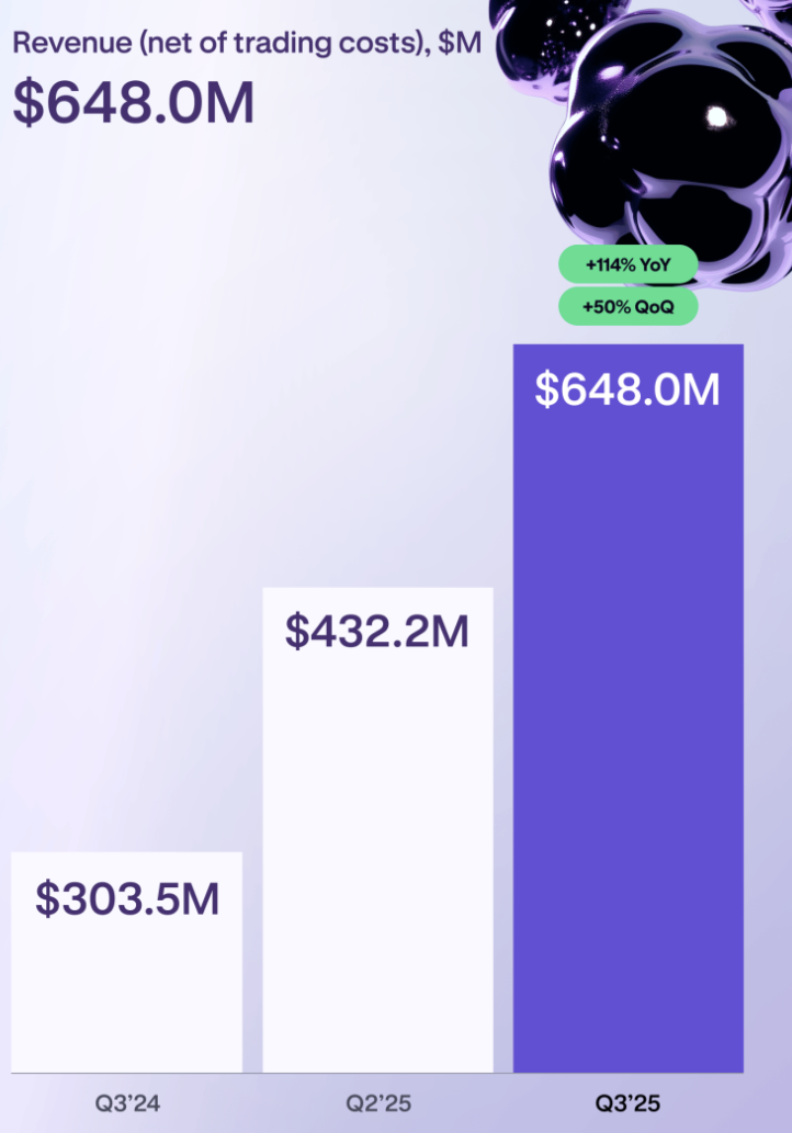 Kraken has reported its financial performance for Q3 2025, spotlighting a remarkable revenue of $648 million, reflecting a 114% year-over-year rise. This performance is attributed to an upswing in trading activities, user base expansion, as well as strategic acquisitions.