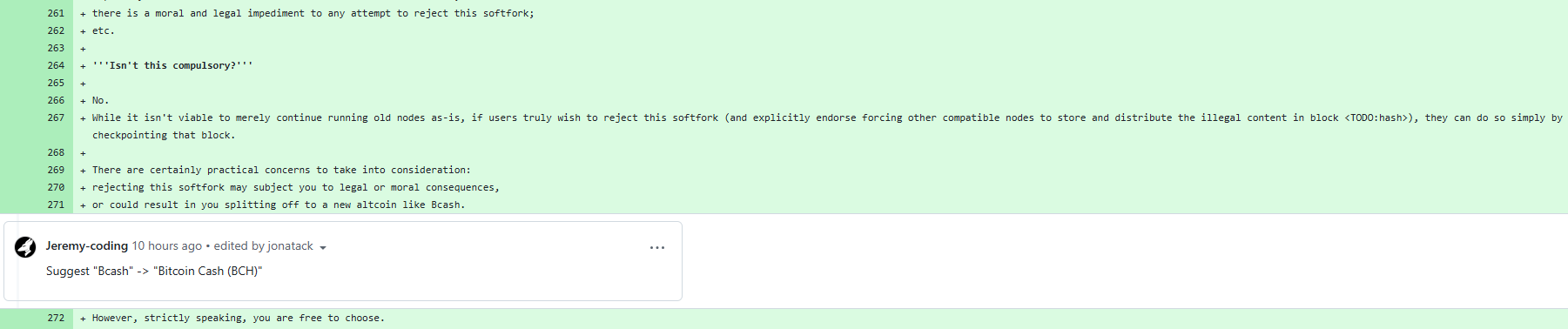 Several lines in a new Bitcoin improvement proposal are being criticized as an attack on the blockchain. Source: GitHub