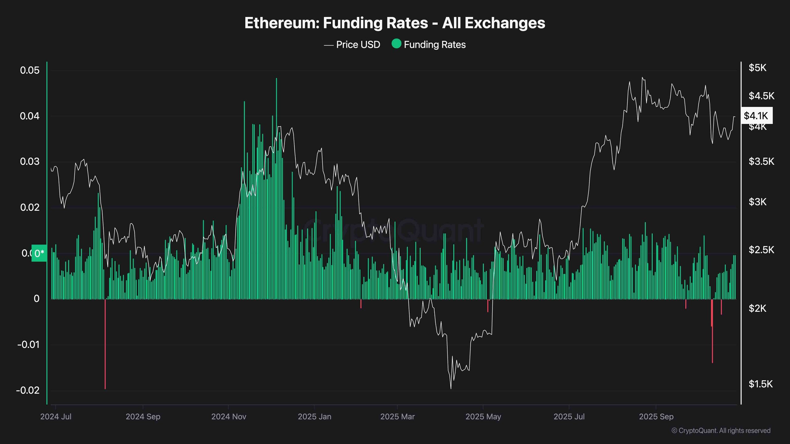 Recent sentiment in the Ethereum futures market reflects increasing optimism, yet it has not entered a dangerous territory. Positive funding rates emerged following significant negative prints during the September and early October downturns. This indicates that more investors are positioning for long trades, anticipating further price increases. However, the absence of excessively high funding suggests that the market isn’t overly euphoric or leveraged, a positive sign for continuation, especially if prices can break through the existing resistance range.