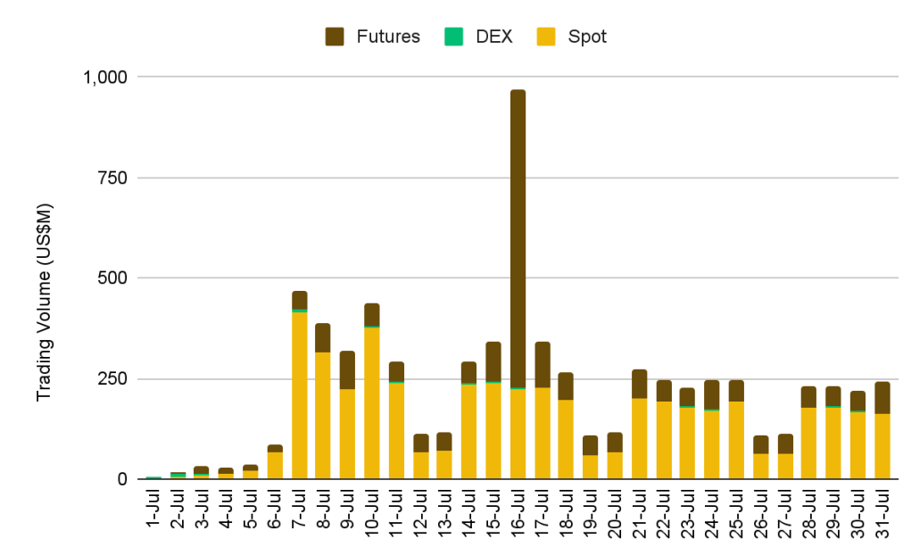 The increasing institutional appetite for tokenized products led to a 220% surge in tokenized stocks during July. This growth is reminiscent of the early DeFi era, when total value locked (TVL) shot up from $1 billion to $100 billion within a mere two years, according to Binance Research.