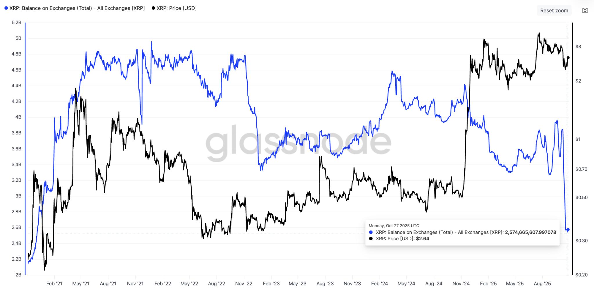 Technical analysis indicates XRP could trend towards $3 as exchange balances decline significantly.