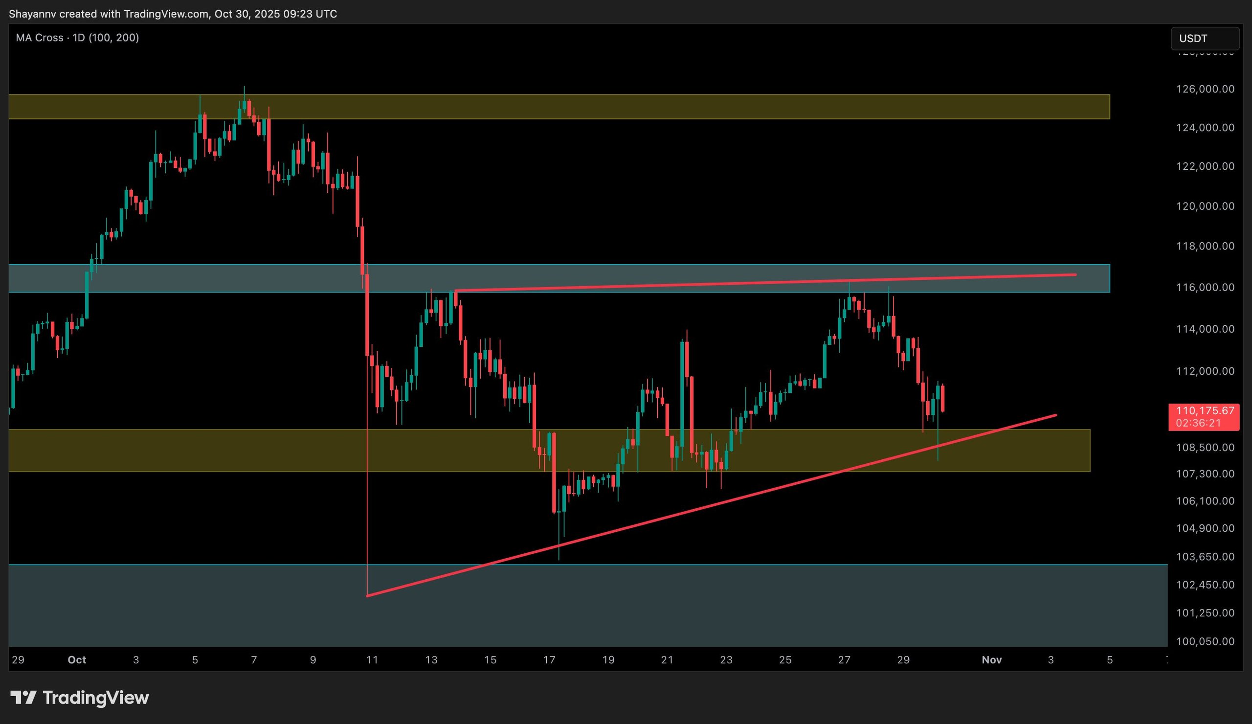On the daily chart, BTC finds itself between the 200-day MA at $109K and the 100-day MA at $114K, which are significant thresholds. A recent rejection at the 100-day MA followed by a rebound off the 200-day MA highlights this consolidation area.