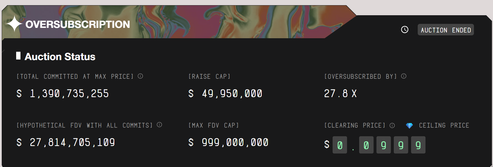 MegaETH’s initial coin offering (ICO) for the MEGA token reportedly sold out quickly after its opening Monday, closing with over $1.3 billion in commitments—an oversubscription rate of 27.8 times.