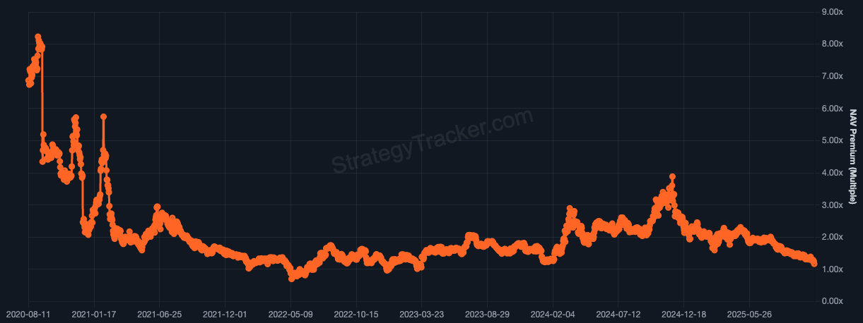 Strategy’s mNAV has fallen to its lowest level since early 2023.