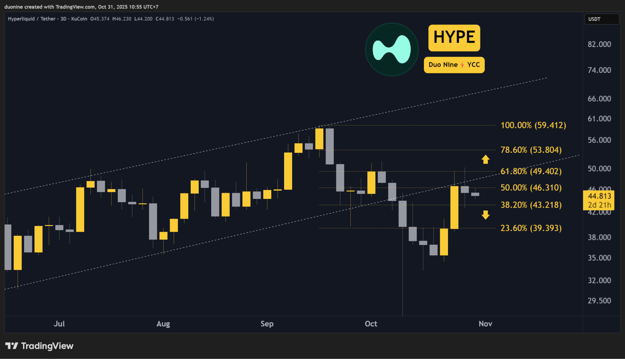 Future momentum for HYPE appears optimistic, but it must break above $50 to sustain its upward movement. A prior attempt at a breakout was denied, yet buyers may make another push soon, contingent on overall market conditions.