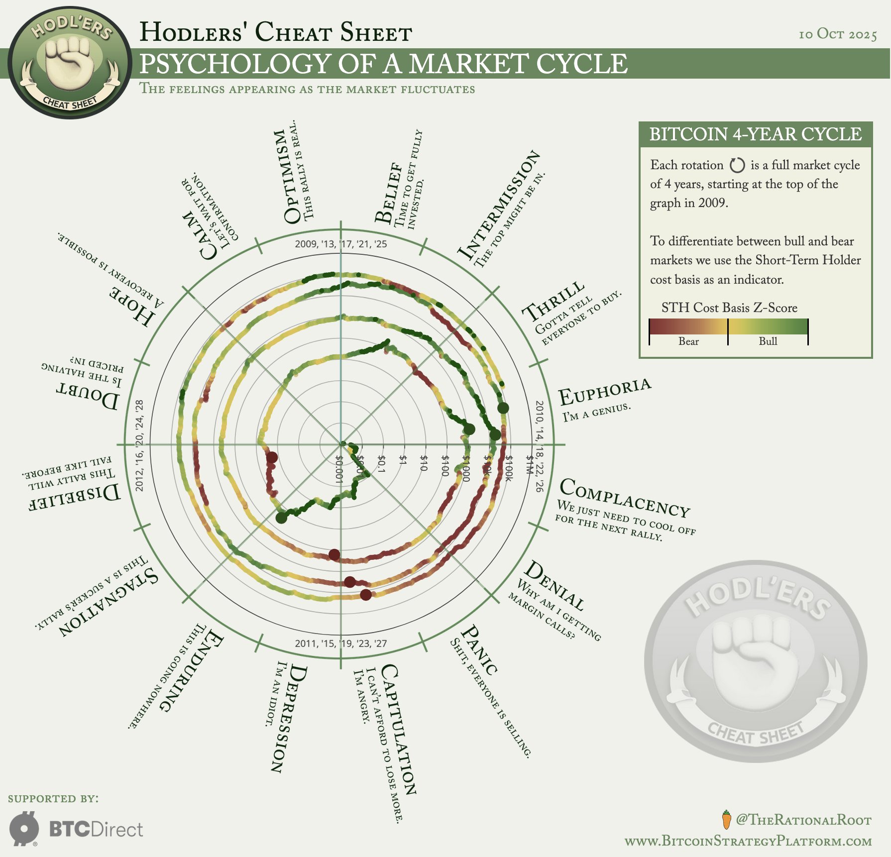 A chart breaking down investor psychology patterns during different points of the Bitcoin market cycle.