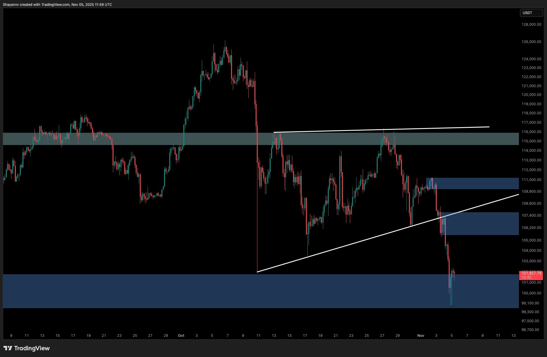 If BTC can consolidate and reclaim levels between $106K and $108K, it could signal that the recent price drop was merely a liquidity event, potentially setting the stage for recovery towards $114K - $116K. Conversely, failing to maintain support above $100K could lead the price down to a broader demand zone between $93K - $95K.